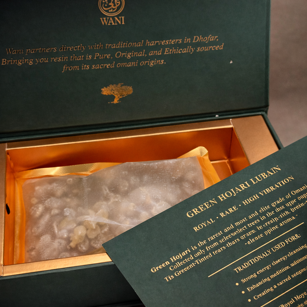 There are fragrances that scent a space — and then there are aromas that carry history, purity, and soul. Our Green Omani Luban is among the rarest forms of frankincense in the world. Harvested i...