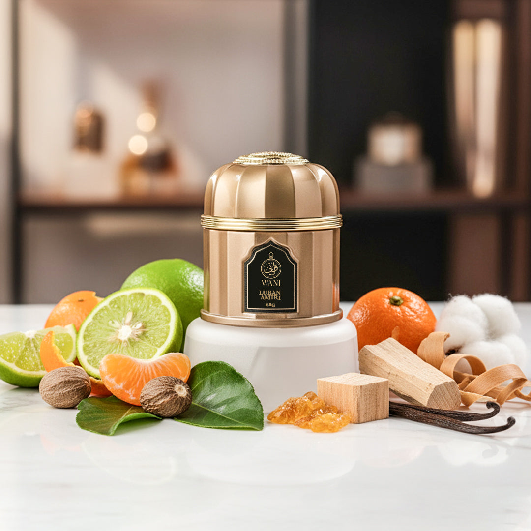 WANI’s Luban Amiri — a majestic blend of 40% pure Luban (Frankincense) and 60% premium Agarwood. Opening with bright notes of Bergamot and Tangerine, it reveals a heart of Patchouli, Nutmeg, and Ce...