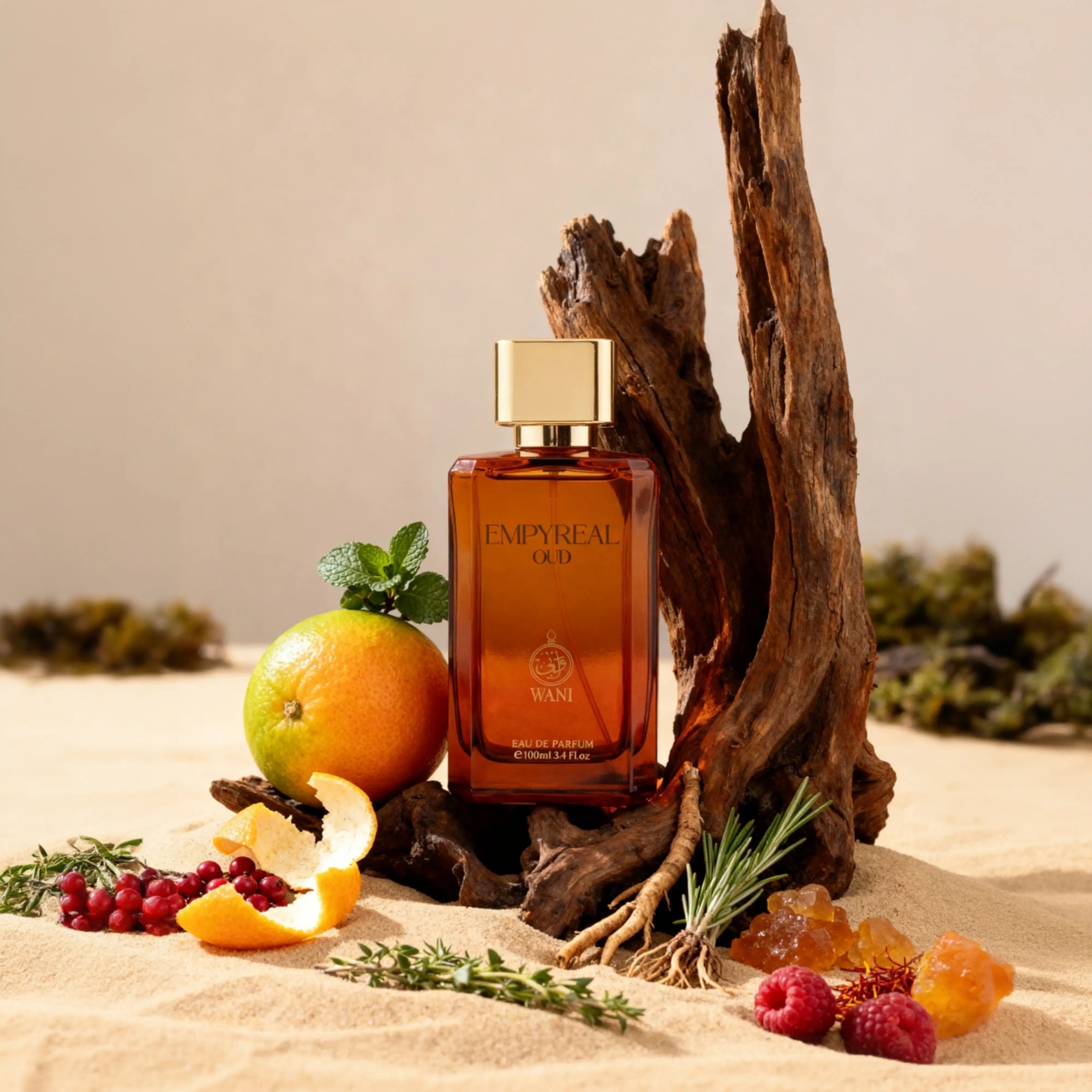 Oud Empyreal blends deep oud with warm amber and fresh aromatics, capturing the serene elegance of California’s golden sunsets.